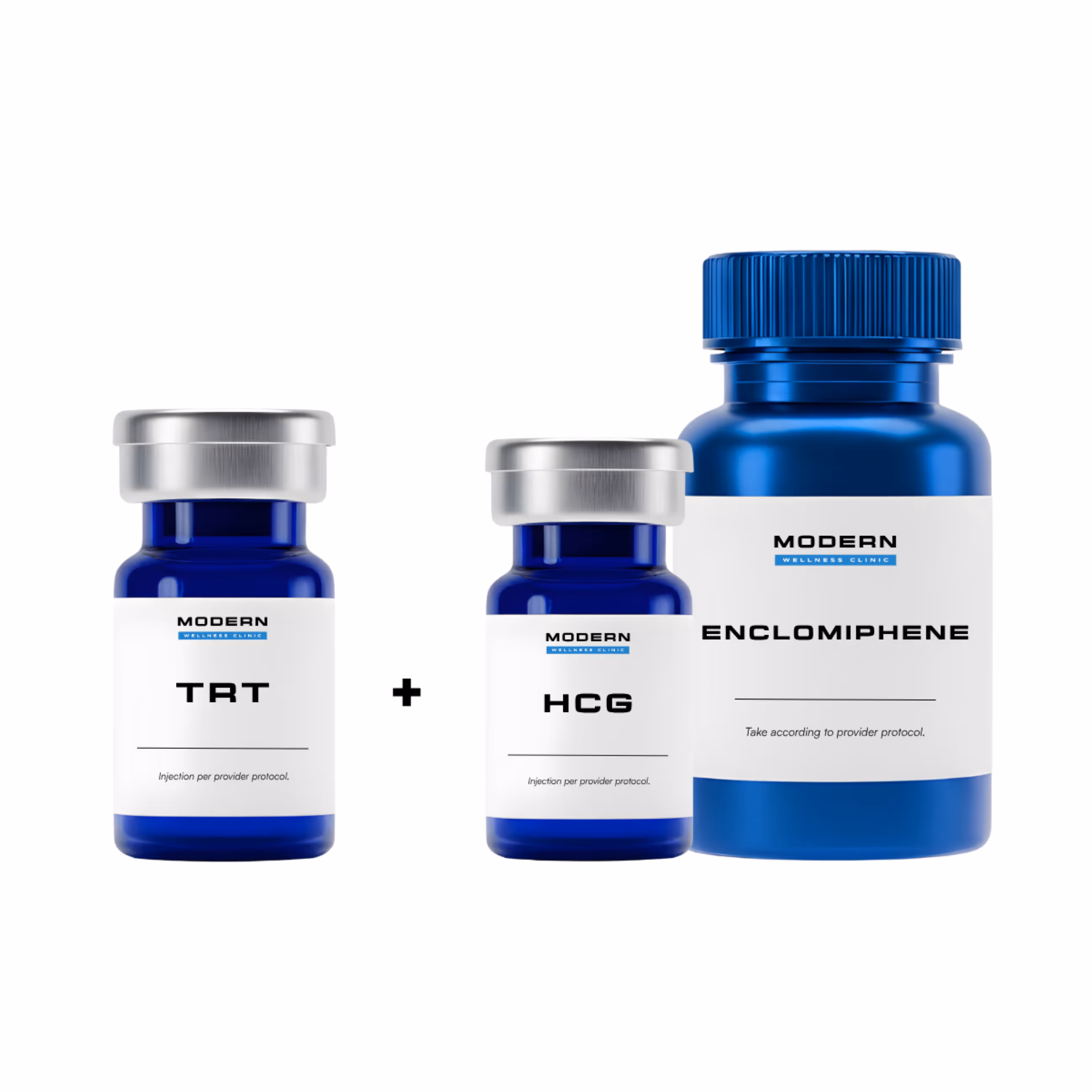 TRT Injection + hCG, TRT Cream + hCG, TRT Troches + hCG, TRT Injection + Enclomiphene 25mg, TRT Cream + Enclomiphene 25mg, TRT Troches + Enclomiphene 25mg